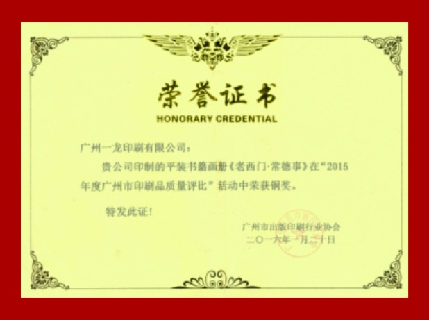 2015 GUANGZHOU PRINTING QUALITY BRONZE AWARD