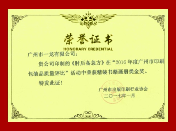 2016 GUANGZHOU PRINTING AND PACKAGING QUALITY GOLD AWARD