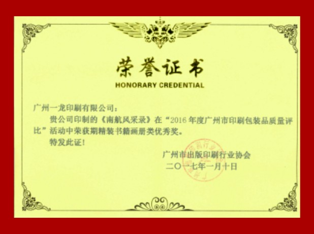 2016 GUANGZHOU PRINTING AND PACKAGING QUALITY HONORABLE MENTION