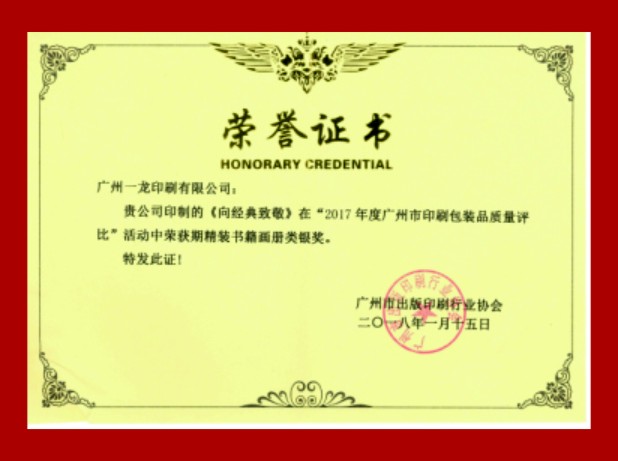 2018 GUANGZHOU PRINTING AND PACKAGING QUALITY HONORABLE MENTION